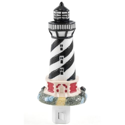 Bring brightness to any room with this adorable light house night light. The light house is made from porcelain, complete with black stripes and detailed ground scene. Just plug in this light to any power supply and flip the switch to light up any dark room. It's the perfect addition to any bedroom, bathroom, kitchen, or any room needing a little extra light. This night light is UL approved for your safety and comes with a 5 watt bulb (the maximum wattage allowed) so it's ready to use.