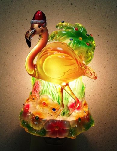 Tropical Island Art Glass Christmas Pink Flamingo Night Light Decor