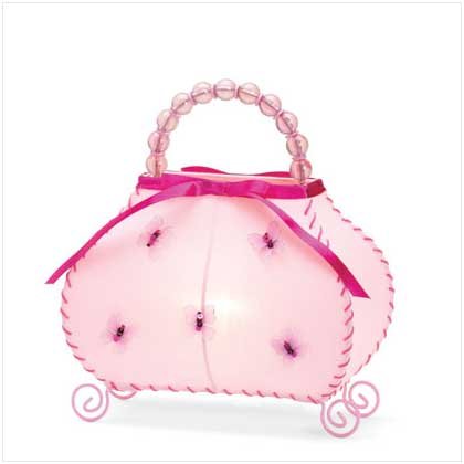 Cast a soft, friendly glow with this charming and delightfully unique nightlight in a pink handbag design. Wire and cotton. UL Recognized. 7 watt bulb maximum (included). 10 1/2" x 5 1/4" x 12" high.