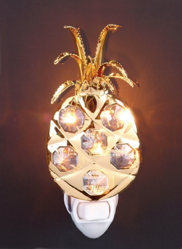 Pineapple 24k Gold Plated Swarovski Crystal Night Light Beautiful 24k Gold Plated Night Light Will stand out in any decor. Includes beautiful Swarovski Crystals. All officially manufactured Swarovski crystals are laser etched with marking. Night Light turns 90 degrees for vertical and horizontal outlets. Dimension: 2.5 x 2.5 x 4H