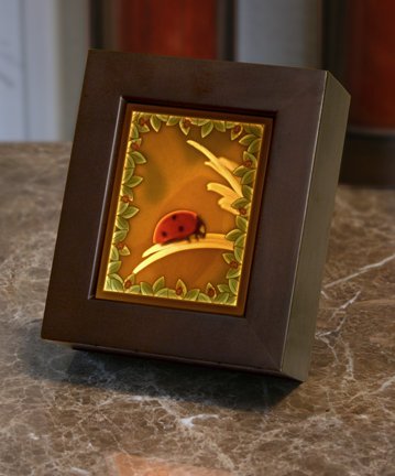 Lithophane Shadow Box - Ladybug Color Porcelain Lithophane Night Light Feature